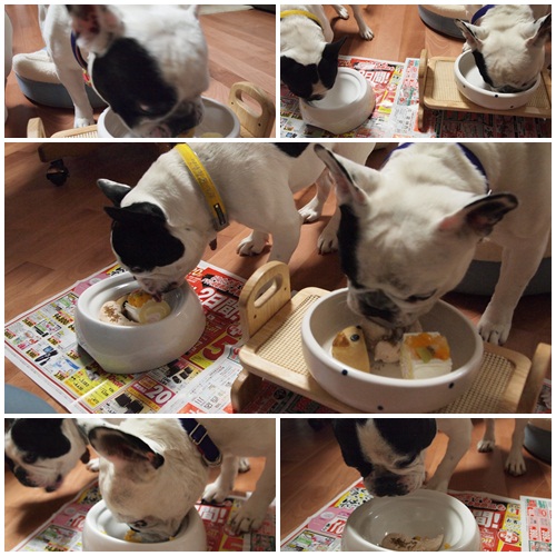 ワタクシちゃんちゃい(三歳) 大左エ門のこと 2011年02月18日 comment(6) http://j24h.blog.shinobi.jp/Entry/705/ワタクシちゃんちゃい(三歳) 本日、大左エ門は3歳になりました!チッコたれのちゃんちゃい!デス。誕生日、特別メヌー!犬の顔をした茶色のやつは、犬用肉まん。そして定番のケーキは、フルーツケーキ。そして、デーンと大盤振る舞いにささみの蒸したやつ。必死でマテをしている2ブヒです。あまりに必死になっているので、ふうは京劇用の顔になっております(-ι_- )クックック…ちみたち2ブヒいるおかげで年に2回も誕生日メヌーが食べれていいねぇ。今日は、大き目にカットしてあるので、丸のみ大左エ門は、途中オエオエっとしながら食べておりました。そしてふうは、いつもの4倍速の速さで完食!!いつもなら大左エ門のほうが先に食べ終わるのに、今日のふうは早かった!大左エ門がオエオエっとしているスキに、大左エ門の皿に残っていたフルーツを横取りするふうたれさん(一番左下の写真)もちろんろん、誕生日メヌーにも「きゃどっく」は欠かさず入れました。きゃどっくのおかげか、朝のドライフードをアニマルワンのマザーにしているおかげか、相乗効果なのか、ふうの胃腸は絶好調!うんちもいいウンチをするしね~(量も多いけど)大左エ門もきっちりお皿までなめまくってピッカピカにして、ごちそーさんでしたぁ~!満足満足!(☆嬉o∀O*)♂㊤♂ PR 【ランキング参加中】お気に召したらバナーをクリックしてくださいね。