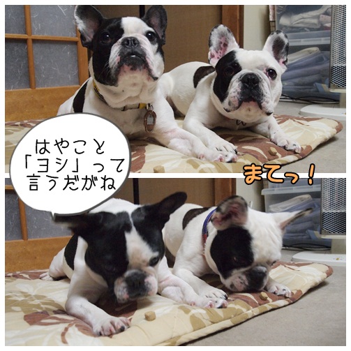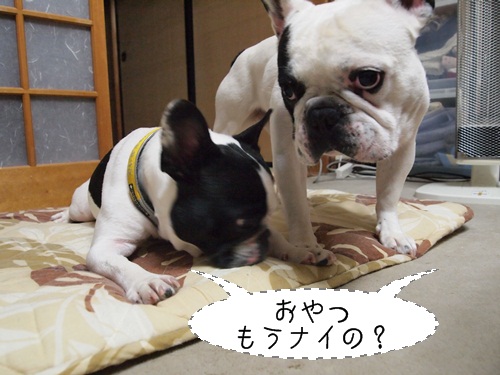 タダでオヤツはもらえない 日常のこと 2011年02月27日 comment(3) http://j24h.blog.shinobi.jp/Entry/712/タダでオヤツはもらえない 食いしん坊のブヒたち。袋を開ける音とか、主たちの動きとか、かなり敏感に察知します。しか~し!そう簡単にオヤツをもらえるわけではナイ!オヤツには「まてっ」がつきものです。オヤツを見つめて頑張ります!たとえ鼻先にぶら下げられてもそこに飼い主がいる限り頑張ります。はいよ~~~~っし!掛け声がかかると一瞬でオヤツの姿は影も形も消え失せるマジシャンもビックラの早業。また次回、お楽しみねぇ~! PR 【ランキング参加中】お気に召したらバナーをクリックしてくださいね。