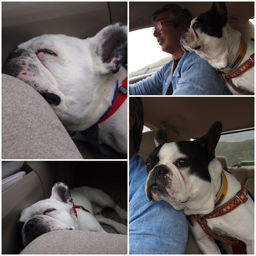 しまなみ海道~因島~ 日常のこと 2011年05月08日 comment(1) http://j24h.blog.shinobi.jp/Entry/740/しまなみ海道~因島~ だんだん混んできたしまなみ海道。最後は、因島へ。ここでは、村上水軍の資料館がある水軍城へ。もちろん復元した城なので、新しい城です。駐車場から降りると、茶屋のおばちゃんが「フレブルが2匹おるよー」と店の中の家族に報告していた。どうやらブヒが好きらしい。エッサホイサと城への階段を上っていたら、茶屋の子供二人が後ろから一緒に上ってきて休憩中のふうたれと大左エ門の名前など情報収集につとめていた。ふうさんヘタレながらも上りました。ぐるっとまわって、再び茶屋へ。さっキブヒたちの情報収集していた子供たちがソフトクリームを食べていたので、ソフトクリームを買ってブヒたちにもおすそわけ。茶屋のおばーちゃんが「上手に食べよるでー」と笑っていた。ふうさんも昨年までは、冷たいものの塊が胃に入るとゲロしてたけど、今年はソフトのなめ方も上手になったらしく大丈夫。子供たちは、おばーちゃんに「こっちがふうくんで~、こっちがだいざえもん」とさっそく収集した情報を報告していた。茶屋ご一家は、どうもブヒが欲しいらしい・・・。そんなこんなで因島もあとにした出雲ぶっひ~ず御一行様。すでに、しまなみ海道の四国方面は、大渋滞であった。そして本州方向も広島まで30キロの大渋滞との情報で一般道へ。だいたいどこでもリラックスできる大左エ門と違い、なかなか気が抜けないふうたれさんですが、さすがに睡魔には勝てずぐったりでした。 PR 【ランキング参加中】お気に召したらバナーをクリックしてくださいね。