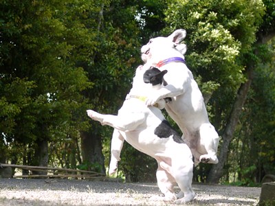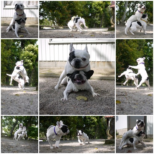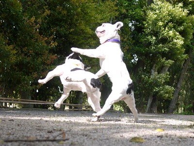アクロバティック バトル 日常のこと 2011年05月15日 comment(1) http://j24h.blog.shinobi.jp/Entry/744/アクロバティック バトル さわやかな日曜となりました~。日中のお散歩は、もうキツイかな~というくらいの陽射しです。今日は、ブヒには幸い涼しい風がさわやかに吹き抜けていた(いや吹き抜けすぎだが)のでお散歩よりも庭遊びがいいんじゃな~い?!ということで、午後から庭に出てみました。いつものバトルです。バトル中、ときおり見られるアクロバティックな技まーまだ体力があるということで・・・・。でもふうさんも今年の8月には5歳ですからねぇ。(ふう) まだまだ、で~ざえもんには負けんけんねーっ!(でーざえもん) ワタクスの修行は、いつまで続くだーかー?永遠の下っ端で~ざえもんでした。 PR 【ランキング参加中】お気に召したらバナーをクリックしてくださいね。