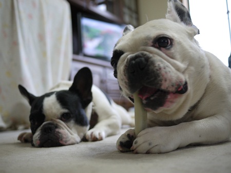 最近、愛食のフード 食事と健康 2011年05月28日 comment(2) http://j24h.blog.shinobi.jp/Entry/750/最近、愛食のフード 今年の3月ぐらいから試しているドッグフード。Raiga2詳しくはサイトのほうで紹介していますので、興味のある方はご覧ください。⇒ ライガ2 ドッグフード当分の間、グリーングレインやマザーと半々に混ぜていましたが、最近は、ほぼこちらオンリーで与えています。2か月ぐらいたってからふと気が付くと、ふうさんの赤茶けた地肌の部分がキレイなピンクに戻っておりました!まーこのフードだけでなく、ほかにも手作り食は、野菜は少なめ、肉メインにしたり、須崎動物病院の人気サプリ「マジカルパウダー」と「ハチミツ花粉」を使用するなど、今年になってからいろいろ食事の内容を変えてみたので、トータルの力かな~と思いますが・・・。オシッコの色もキレイな色になりました。今までは、あれだけ夜の手作りで水分を摂らせているのに、ちょっと濃いオレンジがかった色のことが多かったんですが、こちらのフードにして、手作り食の野菜も少なめにしたら、レモン色のオシッコに・・・(笑)そして手作り食で水分を多めにしたときは、さらに薄い黄色に。いい感じです!ちなみに尿結石のわんこさんには、茹で野菜は厳禁とか。とある獣医師さんのサイトで、面白いサイトがありましたので、ご紹介しておきます。いささか乱暴な文章ではありますが、ストラバイトを繰り返すわんこさんの飼い主さんは、参考にしてみる価値はあると思います。尿の酸性化についても書かれていますよ。(食事よりも運動なんだそう)⇒ 犬の尿結石それにしても5月なのに梅雨入り~。ブヒたちの夏の準備したんだけどー、今日なんか肌寒いし・・・。(でーざえもん)ふう兄やん、そ・そ・その顔は~エレファントブヒになってしまったでつー(ふう)ほっとけや。でーざえもんほど崩れちょらんけんっ! PR 【ランキング参加中】お気に召したらバナーをクリックしてくださいね。