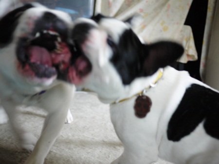口ゲンカ 日常のこと 2011年06月01日 comment(2) http://j24h.blog.shinobi.jp/Entry/753/口ゲンカ 今日は、ボケボケの幽霊写真で申し訳なし。あまりの激しさに、まともな写真が撮れません。・・・まぁテクニックがナイだけ・・・ ですが・・・ハイ。本当に、すさまじい口ゲンカが毎日繰り広げられている我が家です。どう頑張っても口の大きさで、ふうさんに勝てるはずがないでーざえもんですが・・・。そんなときは奥の手。ふうさんの、ほっぺを噛みます。みごとな「ドヤ顔」のでーざえもん。してやったりと得意げです。 PR 【ランキング参加中】お気に召したらバナーをクリックしてくださいね。