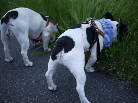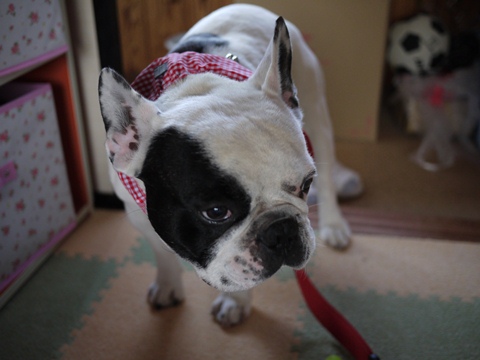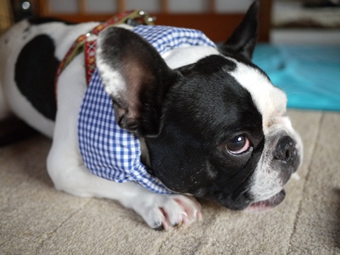 ブルドススタイル~クールスヌード~ 日常のこと 2011年06月05日 comment(1) http://j24h.blog.shinobi.jp/Entry/754/ブルドススタイル~クールスヌード~ ブルドスさんをご利用の皆様は、もうすでに買っていらっしゃる人が多いこのクールスヌード!昨年の夏から欲しいと思いながらようやく今年、買ってやることができました。こちらハーネスもブルドススタイルでございます。ブルドスづくめの赤づくめ。男の子だって、赤が似合うんです~。(と思っているのは、親ばかな飼い主だけ・・・)よく茂った草むらの小道を行く出雲ぶっひ~ず。サラダバー食べ放題。見ていると食べる草は、だいたい決まっているのです。一応選んで食べている。ちなみによもぎは食べません。いっぱいよもぎも生えているんですけどねぇ。昔、膝小僧を擦りむいたとき、よもぎの葉っぱをむしって汁を傷口にぬったという経験がある人もいるかと思いますが、ふとブヒのハゲに塗ったら効かないのだろうか?というよからぬ考えが思い浮かびました。先日ごろ、1~2か所ふうさんにハゲ発見したので、ちょっと警戒しております。でも地肌チェックは特に異常がなく、ハゲも広がることなく治っているので今のところは大丈夫です。パピコのころよくブツブツが出ていた大左エ門は、むしろ最近では、足の付け根あたりにブツっと赤いのが数個できることはありますが、ほとんどトラブルナシ。昨年は、2ブヒとも目が赤くなったり、ふうさんのハゲや大左エ門の外耳炎やらとチマチマトラブルがあったんですが、今年に入ってからは2ブヒともその手のトラブルはないので一安心です。さて、ブルドスさんのクールスヌードですが、どうもこういうカサカサと音のする生地が苦手らしいふうさん。初装着時・・・固まりました・・・・。この状態で散歩に行くことに、大変に気乗りしないオーラを発しております。半分、怒ったような顔してますが、無理やり連れだしてしまえば、こっちのもの!一度慣れてしまったらあとは大丈夫なようでした。お初のスヌードにも全く抵抗のない大左エ門。とにかく一緒に連れていってもらえれば文句はないらしいデス。 PR 【ランキング参加中】お気に召したらバナーをクリックしてくださいね。