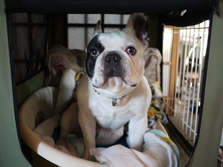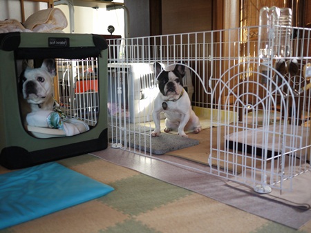 留守番中、雷で停電! 日常のこと 2011年07月11日 comment(4) http://j24h.blog.shinobi.jp/Entry/778/留守番中、雷で停電! 今日、仕事から帰ってみると、なんとなく部屋がもわっとしている。といってもそもそも二間続きの部屋で、ブヒ部屋じゃないほうの部屋にしかエアコンはついてないので、ブヒ部屋は、ひんやりした空気が少しずつ流れ込んでくるだけで、部屋全体が冷えることがないので、たいてい29度前後。そんなんなので、今日も「こんなもんかな」と思ったが、エアコン部屋のほうへ近づいても冷気が感じられないので「あれ?」と思ってエアコンを見上げたら止まっていた!多分、夕方ピカゴロと雷さんが光っていたので、きっとソレだ!(奥の南側の部屋にエアコンがある)義母に聞いたところ、どうやら3時半ぐらいから10~15分程度の停電だったようだ。外からスダレをかけた西と東の窓は開けてあるし、一雨降ったところで外気も下がったし、暑さのピークは過ぎて夕方に向かう時間だったし、充電式の扇風機と充電式のサーキュレータを小型のクリップ扇風機がブヒ部屋には回っているので、大事には至らなかったが、雨も降らず熱風が吹く真昼間だったら・・・こわっ。充電式の扇風機とサーキュレータは買っておいて正解だったかも。そして昨日は、またまた大左エ門のサークル位置を動かしたところだった。エアコン部屋の冷気が漂う近くにサークルを移動させたところだった。保冷剤も部屋に数個、発泡スチロールの箱に入れて置いてあるし、大左エ門のクレートには、クッションの下にひんやりアイスマットなるものを敷いてある。これは、アルミの保冷カバーの中に凍らせた保冷剤を入れるタイプのマットなのだが、意外と良かった。クレートの中に入れてさらに上にいつも寝ているクッションを置いているので、12時間の留守番から帰っても保冷剤も少ししか溶けていない。もっともクッションを上に乗せている分、冷え冷えにはならないのだけど、クレートの中は温まりにくいだろうし、暑さに強めな大左エ門には、それでちょうどいいのかも。一応、溶岩マットも敷いてあるが、この上でベタ~と寝ることはナイ!よくてクレートの中で寝ていて、顔だけ溶岩マットの上に乗せている程度。ふうさんは、フリーなので、夏になるとあちこち場所を移動しながら寝ている。特におかやんのタンスが置いてある部分だけ板の間になっているので、タンスに背中をくっつけて板の間で寝ると気持ちいいらしい。昨日ちょうどテラコッタ製ウエットタイルマットを注文してみたので、この板の間の部分に置いてみようと思う。これは上に乗ってさえくれれば、かなり強力な冷え冷えアイテムになると思われるので期待大!そう上に乗ってくれなきゃ意味がないのだけどね~。 PR 【ランキング参加中】お気に召したらバナーをクリックしてくださいね。