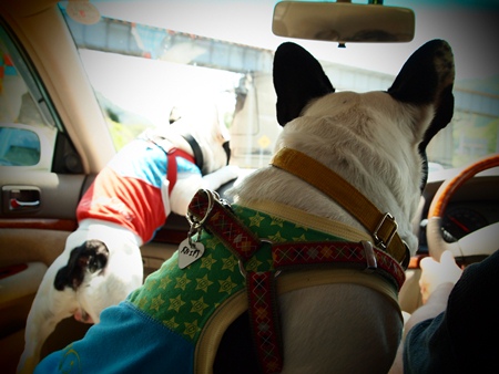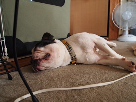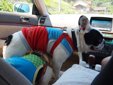 おでかけ、そして脱力 日常のこと 2011年07月18日 comment(3) http://j24h.blog.shinobi.jp/Entry/780/おでかけ、そして脱力 いやー素晴らしかったですね。GOOD GAME!なでしこジャパン、見ごたえのある試合でした。澤選手もすごかったが、私的にはPKの1発目をあの足で止めたGKに拍手だよ~ん。・・・って、アンタほとんど寝とったが・・・昨日、出雲地方は、この夏、最高気温を記録しました。そんな中、ちょいと三瓶山のドッグカフェへ行ってきました。車大好きふうさん。暑いのにフロントガラスにへばりついてます。ヘルニア予防のために飛びつきや階段の上り下りはさせません!というご家庭には、無謀にも思える態勢でしょうが(笑)うちは、ヘルニアの予防名目では、そういう制限をかけません。大左エ門は、後ろ足が弱いので制限をしますが。ふうさん、こっちを見て何かを訴えてると思ったら・・・大左エ門がふうさんの腹の下を無理やりくぐろうとしておりました。ドッグカフェ~のほうは、エアコン設定28度のガラス張り。しかも昼間の到着だったので、しっかり1時間待ち(汗)犬連れも次々いらっさるので、写真など撮っている余裕もなく、大騒ぎするブヒたちの静止にエネルギーを費やす飼い主でした(笑)ブヒたちにとっては、ドッグカフェより帰り道にコンビニで買った蒜山ジャージー牛のソフトクリームのほうが良かったようです。帰宅して2ブヒをシャンプーして、夕飯後は、大左エ門もふうも「今日はもう満足じゃ~」ってな顔して、夜、おとやんとおかやんが出かけようとしたときもいつもなら一緒に連れてけと騒ぐのに、「あー留守番しとるけんね~いってらっさ~い」と言わんばかりに、自分で勝手にクレートに入っていきました。そして今日の大左エ門・・・まだまだ脱力中。 PR 【ランキング参加中】お気に召したらバナーをクリックしてくださいね。