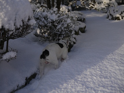 雪の中 第二幕~ふうたれ編~ 日常のこと 2012年02月21日 comment(1) http://j24h.blog.shinobi.jp/Entry/855/雪の中 第二幕~ふうたれ編~ 今度は、ふうたれくんの番ですよぉ。もう慣れたかな?と思いきや・・・やっぱり・・・軒下オトコだ。。。庭の松に積もった雪。朝の太陽の光に照らされているうちに、次第に溶けてゆく雪。時々、木のてっぺんから雪崩が・・・!!ひゃっこいけど、気持ちいい~!【ふう】 オラちゃん、行くわ・・・。 いつまでも軒下オトコと呼ばれるのは、オラちゃんのプライドにかかわるけんね。さすが、ふうたれ。マイペースに雪の中を進んでいく。【ふう】 オラちゃんをでーざえもんと一緒にしちゃーいけんわね。背中に雪が降ってきても顔に雪がくっついても平気~!っていうか、また顔が京劇の人って言われるよー。ちなみにこのペロペロは、決して雪をなめているわけではなく、たぶん鶏のウンチがついているのでは?ふうさん臭いにおい大好き~(涙さて、そろそろ帰るかね。と思って、ふうたれを捕まえようと思ったらだんだん楽しくなってきたらしく逃げる逃げる!テンションあげあげになってきて、雪の中を猛ダッシュするふうたれくん。【ふう】 ひゃっほ~いっ!! たっのしぃ~!これこそ犬本来の姿じゃの。 PR 【ランキング参加中】お気に召したらバナーをクリックしてくださいね。