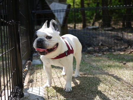 隣の大型犬用のスペースに犬が入ってきたらフェンスぎわから離れられない