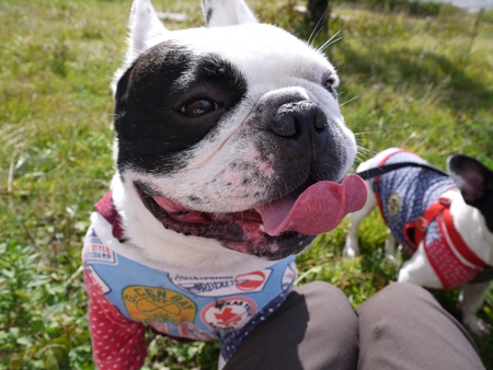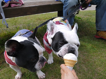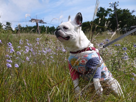 秋の山の巻き おでかけ 2012年10月08日 comment(3) http://j24h.blog.shinobi.jp/Entry/922/秋の山の巻き 一気にぶっひ~ずの季節がやってまいりました!出雲ぶっひ~ず、本日は蒜山~大山方面へ久しぶりのドライブでした。まずは蒜山。ジャージー牛の放牧のとこへ行ってみたんですが、しばらく放牧はお休みとの看板が・・・。残念。まっとりあえず定番の(?)ソフトクリームでも食べるとしますか。が、しかし・・・ふうたれは、冷たいものを食べると吐く体質のようです。いやこの1~2年は大丈夫になっていたんですが、ここにきてまたもやダメになってきました。今日もなめているうちはいいのですが、かたまりで食べちゃうとゲロっとね(涙好きなのにねぇソフトクリーム。ということで、ソフトを食べた後は、ちょっとドライブしてからこれまた定番となったハーブガーデンへ・・・。大人300円。犬無料。というありがたいところです。(ただし、ワンコは外のみ~なので建物の中には入れませんヨ)ちょっとした丘を散策できます。ハーブガーデンは、蒜山でもちょっと高いところにあるせいか、すでにイチョウが黄色くなっていました。秋の穏やかなお天気の良い日を選んで来ると最高!!だと思います。蒜山の中でも人が多くもなく少なくもなく知ってる人は知ってる・・・って感じ。という我が家も知りませんでしたが、よもつくちゃんとこに教えてもらってから蒜山でランチというとココ!ランチは、メニューはカレーかパスタかベーグルセット。あとハーブティ各種しかございませんので、あしからず。でもハーブガーデンというだけあって、ハーブティがいろいろあります。いつもはカレーなんですが、なにしろ夕べの我が家のメニューがカレーだったので、今回は、初めてパスタをいただきました。サラダとミニヨーグルト付き。あと試飲のハーブティもいただけます。雨が降っているときはワンコ連れは無理ですが、お天気のよい日は外のお席でランチできます。今日も外の席はみなワンコづれ~で、いささか興奮スイッチの入りやすいブヒには大変でしたが、それでも一応、隣の席とは区切られているので、なんとかね。ブヒ飯はないので、おやつ持参でね☆彡お腹がいっぱいになったところで、売店でワタクシ、アロマの芳香剤とオリーブオイルの石鹸なんぞを物色してお買い上げ。ハーブの枕(1,900円)も欲しかったけど、今回は我慢。今回、ジャージー牛のいるところへ行く途中で、パン屋の隣に「ドッグカフェ」と書いてある小さいお店を見つけました!また機会があればと思いますが、うちのぶっひ~ずたちは、外で食べられるハーブガーデンのほうが合ってるかもな。さて、蒜山をあとにして、ついでに(?)大山へも足を向けてみました。桝水高原・・・犬づれ多かった。蒜山も多かったけどね。大山は、今日はバーガーフェスタをやっていたので、大山寺のほうも車が多かったですねぇ。お天気もちょっと風が強かったり、雨雲が降りてたりして時折、お天気雨がポツポツ降ったりしました。ふうさん、しきりと何かが気になるようで、ずっと同じほうを見て、引っ張っていこうとしております。でも何が気になっていたのかは不明。不明ですが、ふうたれの見ている方向からは焼きイカのいいにほいが・・・。おとやんもお腹がすいたというので(さっきパスタ食べたばかりですが・・・)、焼きイカを買いに行きました。あの匂いは罪な匂いだよね。大左エ門くん、さすがに焼きイカは食べられませんからっ!!ほしがるな!ふうさん、風は寒いくらいだけど、やっぱり日差しの中を歩くとガハガハじゃね。いや日差しが原因というよりは、あちこちで出会うほかのワンコにスイッチ入るからガハガハになるんだけどね。たのむからあの発狂癖だけは勘弁してほしい・・・。それ以上に大左エ門がやたらと吠えるのにはもっと勘弁してほしい。本当にうちの2ブヒは、いいところへ出せません(涙) PR 【ランキング参加中】お気に召したらバナーをクリックしてくださいね。