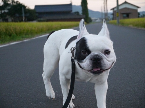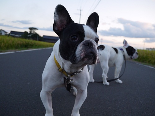明るい時間の巻き 日常のこと 2012年10月31日 comment(2) http://j24h.blog.shinobi.jp/Entry/930/明るい時間の巻き すっかり日が暮れるのが早くなって、明るい時間のお散歩は、お休みの日のみ。ゆっくりのんびりと月を見ながら散歩していたのはひと月ほど前・・・・。今はもう懐中電灯ナシでは散歩できないもんね。8月に6歳になり、ちょっと動くとすぐにウトウトして寝たりして、いかにも爺さんになったな~と思うようなぐうたらぶりを見せていたふうたれは、何故かこのところすんごい元気。あんまりウトウトしなくなった。それどころか朝、おとやんが2階から下へ降ろそうとすると部屋ダッシュをして、鬼ごっこを楽しんでいる。だいたい、おかやんの「ハウス!」の声でハウスして捕獲されるのだけど・・・。毎朝この儀式をして、いざ朝の散歩へ・・・出かけたものの朝の散歩を拒否されることも多くなってきたふうたれ。やっぱり寒いのはイヤなのか?そのてん、いつでもこの方↓はルンルンで散歩にお出かけになる。ふうたれは自己主張つおいなぁ。やっぱり。散歩に出て、よく食べる草はコレ↑。柔らかめの葉っぱがいいらしい。この葉っぱを選んで食っている。それなりにこだわりがあるらしい。ふうたれの散歩は、寄り道が多いので、ゆっくりだが大左エ門は、ぐいぐい引っ張って歩こうとする。そのくせ大左エ門のリードを放すと、あわてて飼い主の足元に走ってくる。どうやらリードがついているほうが強気になれるらしい。散歩から帰ってまったりするぶっひ~ず。最近の夜ご飯は、手作りというよりトッピング。一応メインはフードでなくて肉だけど。肉オンリーのときもあるし、お肉がちょっと少ないかなと思うときにはフードを少し足す感じ。もしかして、ふうたれが元気なのは、お肉のおかげなのか?! PR 【ランキング参加中】お気に召したらバナーをクリックしてくださいね。