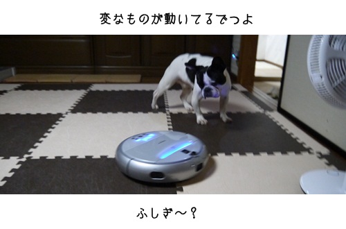 どうやら人間がひきつれていない勝手に動くお掃除ロボは苦手らしい。