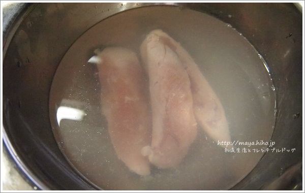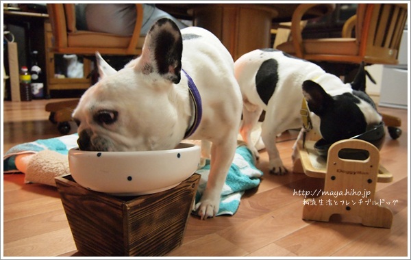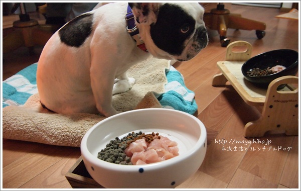 50℃洗いのブヒ飯 日常のこと 2013年03月31日 comment(2) http://j24h.blog.shinobi.jp/Entry/976/50℃洗いのブヒ飯 この頃の我が家のブヒ飯。肉は、主にささみ。たまに胸肉。流行の50℃洗いをブヒ飯でもやっています。(いやむしろ人間用には、めったにやらないんだけど・・・) まぁ50℃洗いなので、お肉は生みたいなもんです。表面だけは白っぽくなりますが生です。お肉だけでは、ちょっと物足りないのでフードとわんわん漢方を足しています。(ふうさんのフードは、ビッグウッドのスキンケア用フードです。大左エ門は、フィッシュ4ドッグを最近は食べさせています。)ふうさん、その物ほしそうな顔で「マテ」するのは、やめていただけませんか?なんか恨みがましく見えますが・・・・。そんなに待たせていません。今夜もすばやく完食!!ふうさんのフードボールを置いている台は、植木鉢カバー(笑)とっても安定感が悪いのです(汗なんかいいフードボールスタンドがないかなぁ~いろいろ探すんだけど、コレ!と思うものがないんよねぇ。 PR 【ランキング参加中】お気に召したらバナーをクリックしてくださいね。