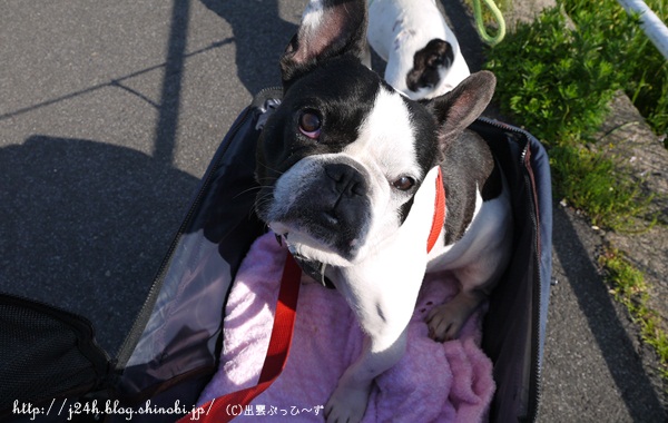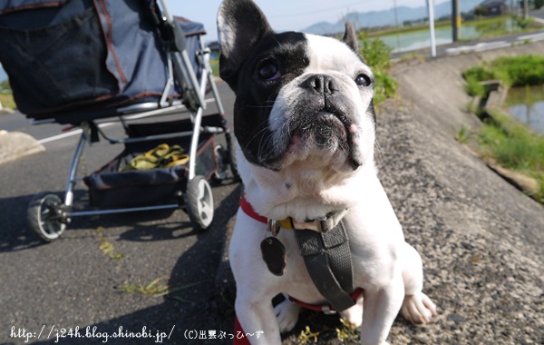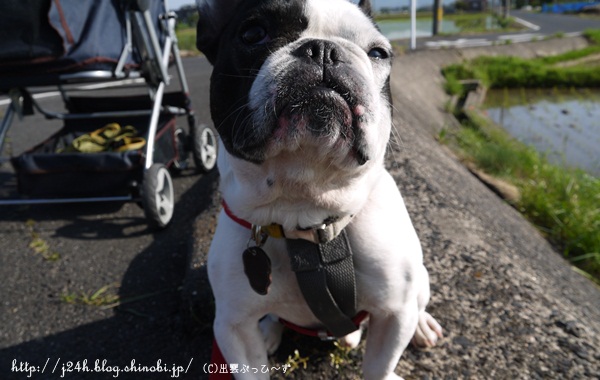 遠足?! 日常のこと 2013年05月19日 comment(1) http://j24h.blog.shinobi.jp/Entry/994/遠足?! あいにく今日は雨模様ですが、昨日は田植え日和!おとやんは、田植えで早朝から忙しかったので、ワタクシ一人で2ブヒを連れて斐伊川土手まで遠足に行ってきました。朝7時半ごろに家を出て帰宅したのが9時ごろ(汗途中ふうさんのスンスンタイムが入るので、片道30分以上かかる(笑) こんなにお天気がいいと、途中でガハガハになるのは予想済みなのでカートを引っ張ってのおでかけ。そのため↑この方は、早くカートに乗りたいアピールを繰り返していました。いやいやまだ片道いくらも歩いていませんからぁ~っ!!!そんな大左エ門アピールタイム中もふうさんは、すんすんタイム続行中。そんな草に一体なんの匂いがあるというのか?あまりにもふうさんの寄り道が長いので、ついに念願のカートインな大左エ門。ご満悦です(笑) PR 【ランキング参加中】お気に召したらバナーをクリックしてくださいね。